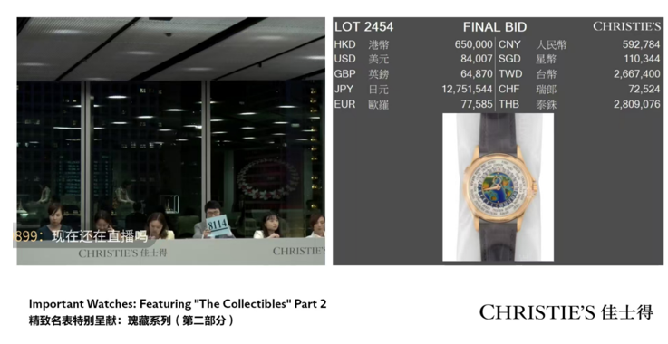 佳士得2024年秋季名表拍卖会藏家委托竞拍直播截图
